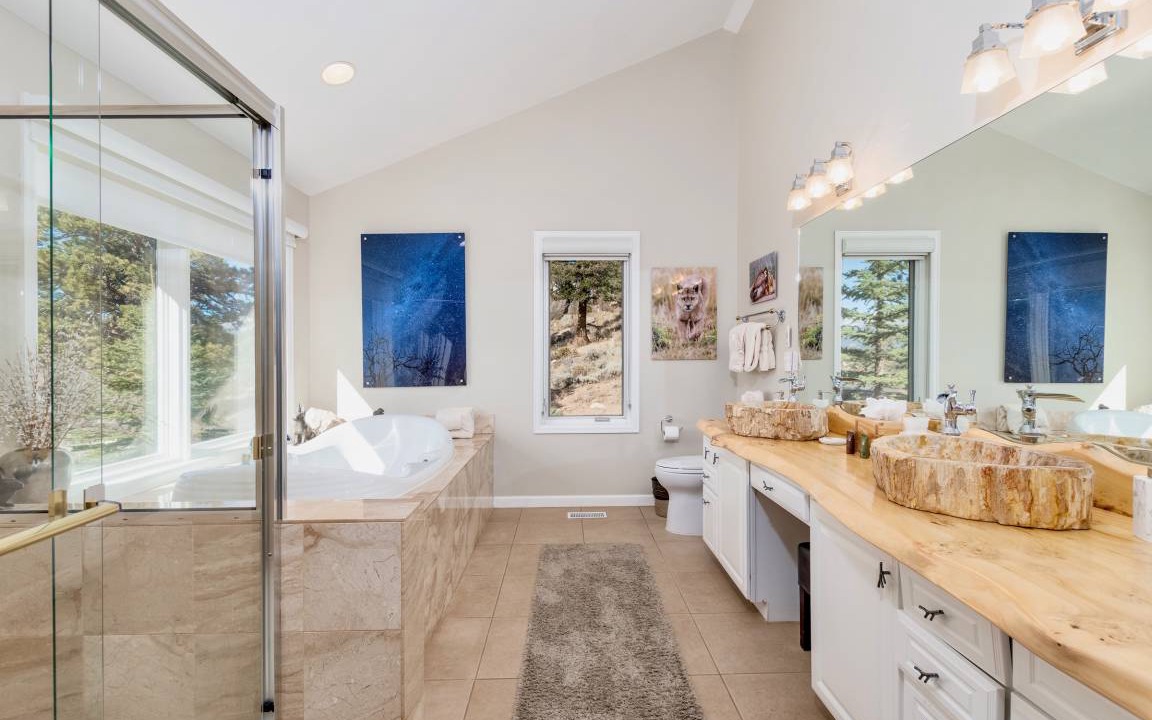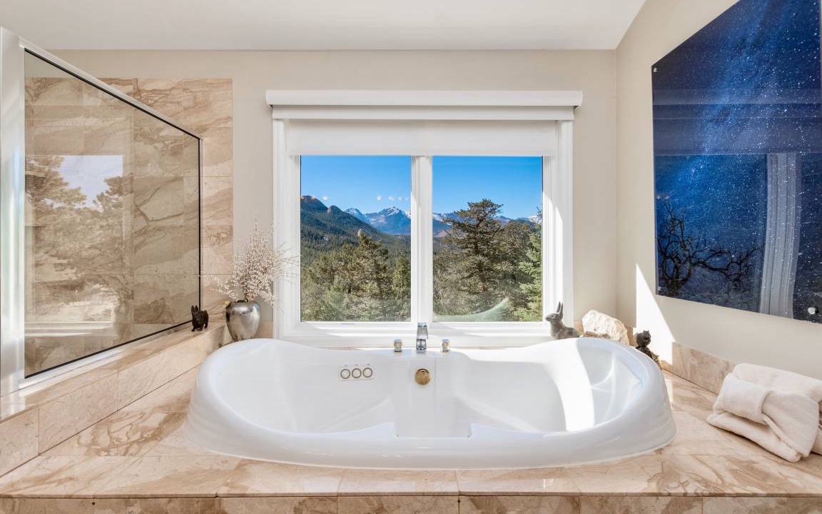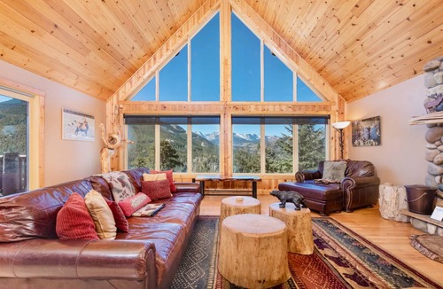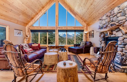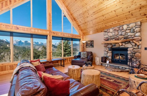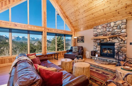 Upon entering, you will immediately be awestruck (sorry, we couldn't resist) by the 180-degree breathtaking views of Rocky Mountain National Park and the Continental Divide. The floor to ceiling windows and the spectacular views are only just the beginning of what awaits you in this executive Estes Park vacation rental.