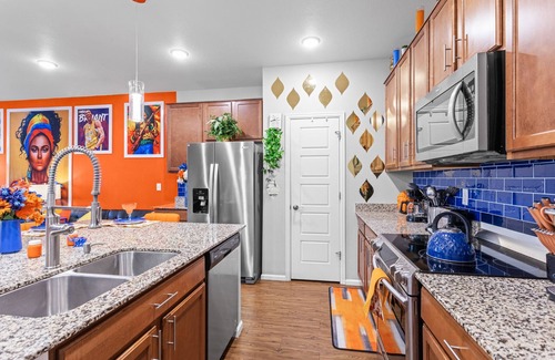 Welcome to KushKations Airport, a spacious and vibrant 420-friendly home located just minutes from Denver International Airport (DIA). Perfectly situated near vibrant outdoor shopping centers, restaurants, and boutique shops, this home offers both relaxation and adventure. Nature lovers will enjoy nearby stunning trails and wildlife at the Rocky Mountain Arsenal National Wildlife Refuge, while golf enthusiasts can unwind at local courses. Whether you're seeking entertainment or relaxation, this property is equipped to deliver an unforgettable experience. Book your KushKation today and elevate your stay!