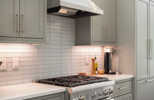 KITCHEN: Stylish, modern with granite counters, custom made cabinetry, professional series appliances; Includes gas stove, dishwasher, garbage disposal, Nespresso coffee machine + frother, Vitamix blender, Instapot, sparkling water maker, and all the cookware necessary to make a gourmet meal.