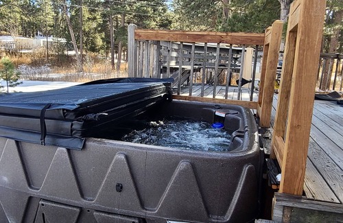 Take it easy at this unique and tranquil getaway, while still close to town. Built in 1931, this 3 bed, 2 bath home is filled with original character and thoughtful updated details to provide the comfort of home away from home. Nestled in the pines, you're situated on a 1 acre lot with a large porch, fire pit and seating area and hot tub with easy access. Inside you'll find spacious bedrooms, a pull out couch, office area, charming kitchen, a basement with large TV and arcade game.