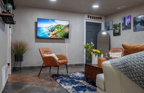 In the center of Colorado Springs, this two-bedroom apartment provides a warm and welcoming place to stay during your mountain vacation. You'll be just a short 19-minute drive from the breathtaking Garden of the Gods, and a 20-minute drive from the impressive US Air Force Academy. For those looking to explore the local culture, Colorado College is only a 13-minute drive away.\n\nYou'll love the convenience of our fully stocked kitchen, complete with a stove, oven, refrigerator, microwave, coffee maker, and all the dishes and utensils you need to whip up delicious meals. Unwind in the evenings with free WiFi and a smart TV, or dive into a good book or a fun game from our selection. With essential amenities like a bathroom, towels, basic soaps, a hair dryer, an iron and board, and climate control, you'll have everything you need for a comfortable stay.\n\nWhether you're seeking adventure or relaxation, our property provides the perfect setting for your Colorado Springs getaway. Come and experience the beauty of the Rockies from the comfort of your home away from home.
