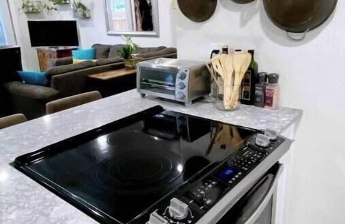 Sleep soundly in your cozy home in a super comfortable bed, then start your day with high-speed fiber internet and plenty of natural light. Whether you're working or unwinding, enjoy the flexibility of indoor comfort with refreshing AC or shady outdoor space under the Catalpa trees. Warm up in winter with central heat or outside on a sun lounger while your pup plays in the fenced in yard. A full kitchen makes it easy to cook your favorites and feel right at home.