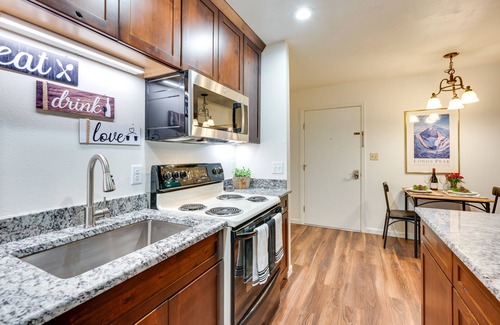 Complement your next escape to Colorado with a stay at this Estes Park vacation rental! The newly renovated 1-bedroom, 1-bath condo features countless comforts — like a well-equipped kitchen, free WiFi, and Smart TVs — as well as top-tier perks, including a balcony with river views and a prime location just 1 mile from Rocky Mountain National Park. Spend the day soaking up some sun at Estes Park Lake or teeing off at Estes Park 18-Hole Golf Course. Then tour Estes Park Museum!
