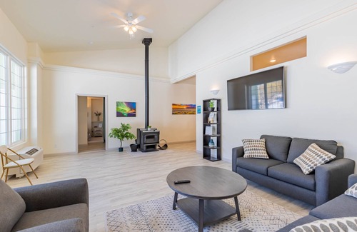 This accommodation fits 2 people and includes a private bathroom. The twin beds may be turned into a standard king per request! Enjoy direct access to the common areas such as the main living room and kitchen. TV, Roku and Netflix are available in the room.