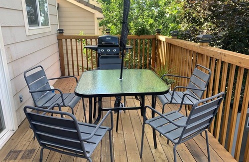 Get some fresh air on the deck which includes outdoor seating and a grill.