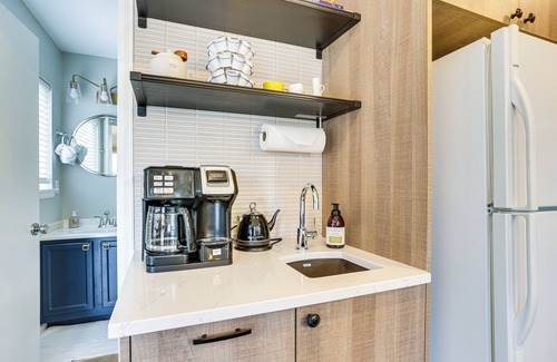 KITCHEN: Dual single-serve/drip coffee maker, stove/oven, refrigerator, dishwasher, dishware & flatware, microwave, cooking basics, spices, toaster oven, water filter, trash bags/paper towels