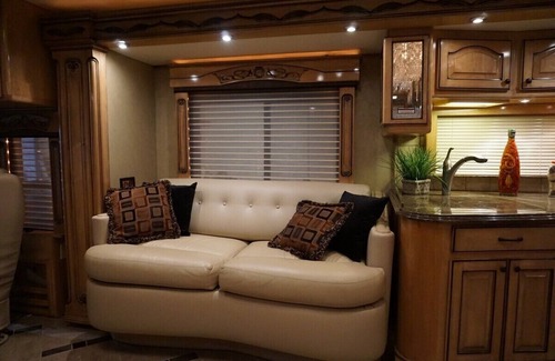 This luxury motor coach comes with a stocked kitchen, including a refrigerator, stove, oven, washer/dryer, central air vacuum and microwave. You will find every tool you'll need to prepare your meals and a cute dinette set to dine on. The modern amenities of this motor coach make it one of the best places to stay in Ouray, CO.