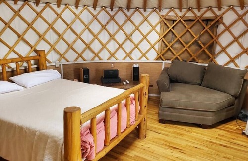 The yurt is BRAND NEW! It was completely reconstructed this past year and is upgraded to a California king bed!