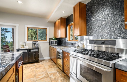 The main house (3 bed, 3 bath) and guest house (2 bed, 1 bath) make for the perfect mountain retreat for large groups or multiple families, giving everyone room to come together or spread out as needed. The main homes features amazing outdoor living space including tons of covered outdoor space with chairs and a dining table as well as a gas fire pit and hiking trails around the property that connect with local trails as well.