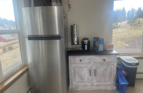 Location! Relax on the Lake with Pikes Peak views. Hot tub! Your private area includes: 2 bedrooms, 1 bath, Large living room, kitchenette, & dining in this spacious penthouse apartment. Entire top floor with private entrance but NOT 1st or 2nd floors. You will never see owner. Space for the whole family! Lots of wildlife, many hiking & ATV/OHV trails just 5 minutes away. Close to 11 Mile Canyon, Mueller State Park, Florissant Fossil Beds, Garden of Gods, & white water rafting. In the middle of the Rocky Mountain playground. Fishing, hiking, boating, kayaking and 2 miles from ATV trail head.