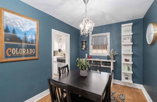 Lil’ Blue is nestled on the east side of Downtown Loveland, Colorado. You'll love your stay at this completely updated & charming home with an amazing backyard, featuring a hot tub to enjoy the beautiful Colorado landscape. Escape to a charming, magical cottage for your perfect weekend getaway. Surrounded by majestic trees and a front yard with a tire swing, this adorable rental will capture your heart from the moment you arrive.