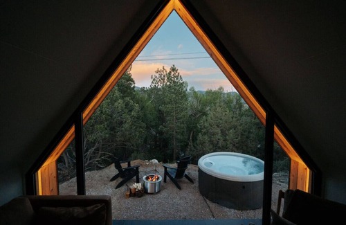 Enjoy the sounds of the river in your very own hot tub or lounge next to your fire pit amongst the mountainous terrain.
