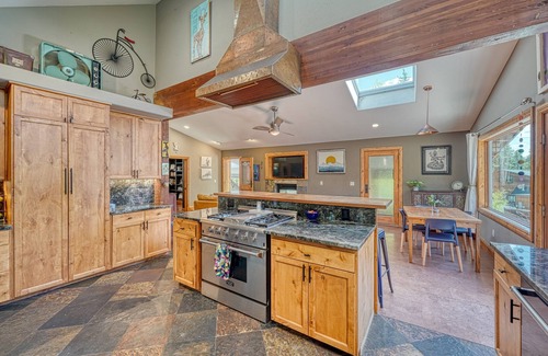 Inside, you’ll find 2,700 sqft of comfort and character. The open main level features a well-equipped kitchen with slate floors, unique labradorite infused granite counters, and bar seating that flows into a bright living and dining area. Huge windows let the light pour in, and cork floors and in- floor radiant heat bring warmth underfoot.