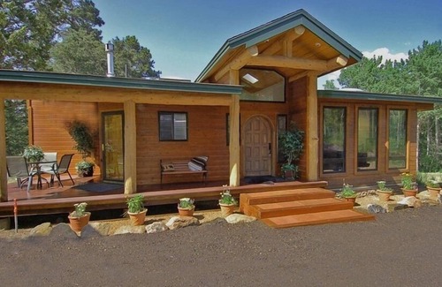 It is a high end custom home with so many unique features you won't find elsewhere. If you are looking for impeccable craftsmanship and something really different that is 5 star quality and a cut above all the rest, you've found it! This is the very best! Hand built by the owner with materials from around the world, this 3500 square feet home sits on 4 manicured acres. It features pines and a huge grove of Aspen trees bathed in a sea of wildflowers (when in season).