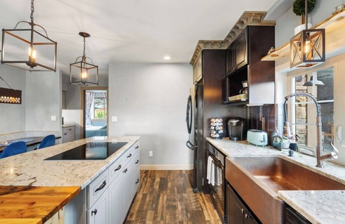 Enjoy the sprawling yard, flower garden, one of a kind hand built play set, or fire pit while outside. Our living room features a 10' sliding door that opens to a covered porch that spans the entire front of the house complete with table and chairs with direct access to the front yard with string lights and fire pit. The upstairs living area opens to a deck with panoramic views and a full swinging day bed. Our bedrooms feature comfy beds, nooks and chairs for working or reading, blackout shades, and a small kids toy collection. Bathrooms feature beautiful tile work, granite counters, and a spa style free standing tub and oversized shower with dual showerheads in the primary bedroom en suite. The fully equipped kitchen is open to the dining and main level living areas making it a great space to gather for a meal or games. Pets are welcome with approval. Our pet fee covers up to two pets. If you have more, please inquiry for special approval. Dogs can enjoy the dog pen that offers a dog door to the dog run or they can play safely in the entirely fenced yard.