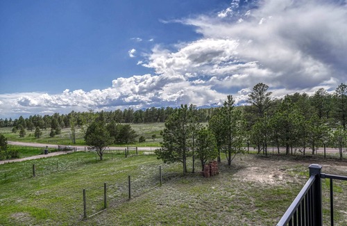 Retreat with Pikes Peak Views in Black Forest Colorado Springs is located in Colorado Springs. Retreat with Pikes Peak Views in Black Forest Colorado Springs provides accommodation, featuring Bedding/Linens, Kitchen, Air Conditioner, among other amenities. This House features Bedding/Linens, Kitchen, Air Conditioner, to make your stay a comfortable one.