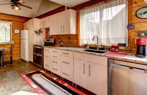 VR-24-0025 Welcome to our charming River Hideout cabin on the river in the tiny mountain town of Raymond, Colorado Between Estes Park and Lyons, just 6 miles south of Allenspark, our cozy 2 bedroom, 2 bath getaway is great as a quiet retreat or as a comfortable base from which to explore the best that a Colorado vacation has to offer. At River Hideout you can fish off the back patio, BBQ on the deck, hang out in the new hot tub while you listen to the river or watch the moon rise over the cliffs across the Middle St. Vrain River while you enjoy a campfire and roast marshmallows. Hike in Rocky Mountain National Park just a few miles down the Peak to Peak Highway, a designated scenic highway or visit Estes Park just 22 miles down the road and shop, ride the tram or mini golf. This cabin on the river is conveniently located close to rock climbing, fishing, horseback riding and skiing at nearby Eldora Mountain Resort. This quaint cabin is your perfect vacation choice, Just relaxing in this quiet setting is a vacation in itself.