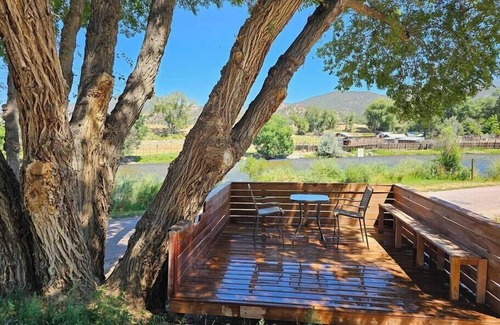 We are an eight-acre located in the heart of the Rocky Mountains in the Arkansas River Valley of Howard, Colorado. At Rocky Top River Ranch, we offer a relaxed, quite, peaceful, natural Colorado Environment. A true Colorado experience. We're just 14 miles east out of historic Salida, Colorado, with Twin Sister Mountains as a backdrop and stunning 360 panoramic views of the Rocky Mountains. The Arkansas River is right in front of us and there are numerous access points to get to the river at nearby parks.
