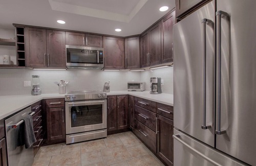 The fully equipped kitchen provides a slow cooker, drip coffee maker and keurig, blender, toaster oven, and more. Gather around the dining table for 6 and end the night with conversations over homecooked meals. Additional seating for 2 can be found by the breakfast bar.