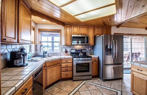 This spacious home features four large decks, including one conveniently located off the kitchen, complete with a gas barbecue grill, seating, and a dining table—perfect for outdoor gatherings. Both great rooms are equipped with large HDTVs for your entertainment. The upstairs master suite boasts two queen beds, while two additional rooms offer comfortable king beds. You’ll have access to Wi-Fi, satellite TV, and a DVD player for added convenience.