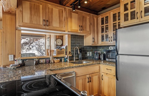 Amazing 3 level chic upscale cabin-feel condo with wood burning fireplace in residential building. Unit is architecturally dramatic w vaulted tongue and grove ceilings, open beams, soaring two story windows w endless views. Sunrise to east on Rabbit Ears Pass, south view to Lake Catamount and nightly alpenglow to west. Warning: staring out windows all day while sipping cappuccino might distract you from skiing. But, if you are drawn to serenity, quiet, winter outdoor activities and events, great Steamboat dining and vibe, this might be the perfect spot for you to celebrate the holidays! Long stay allows you to arrive early and decorate for Christmas!
