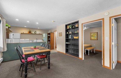 The Cottage has two queen bedrooms and sleeps 4 (max 5 with a twin blow up mattress and additional fee of $10 per night). Complete kitchen with stove, refrigerator, oven, microwave, toaster, coffee maker and Keurig, dishes, pans and silverware. The living area is open plan. Laundry machine and dryer available in the cottage.